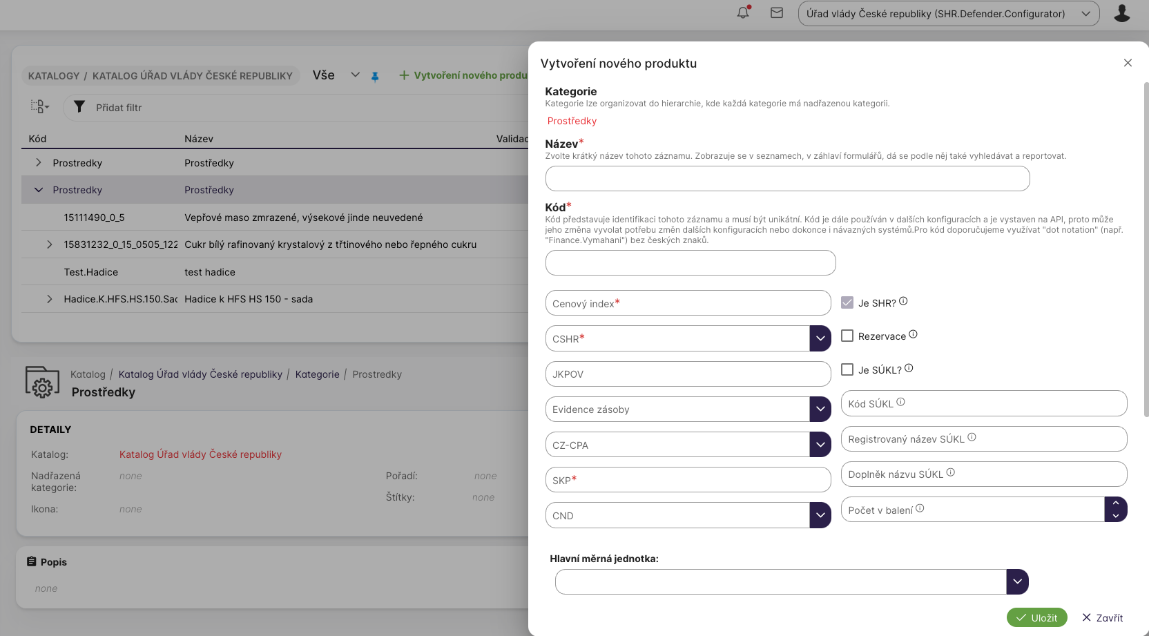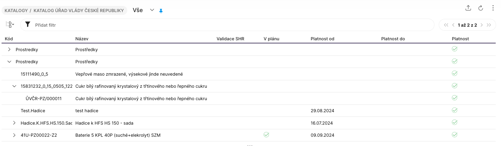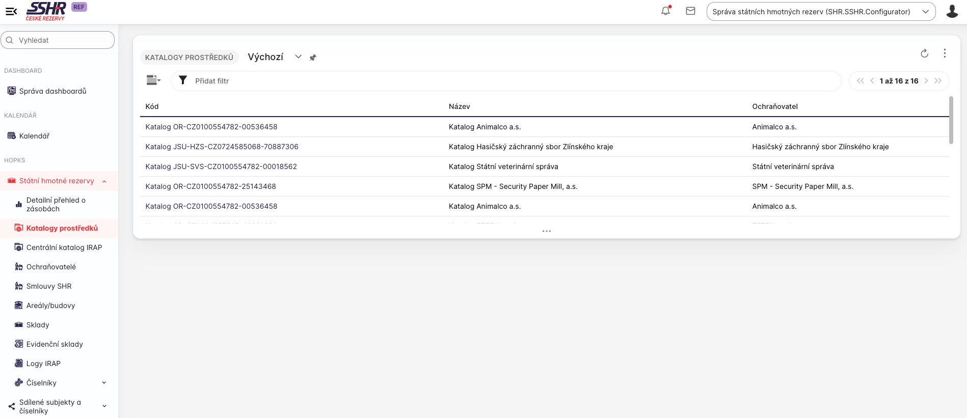 Katalog je členěn na dvě kategorie: Prostředky SHR a Prostředky NeSHR (své vlastní mimo režim SHR).