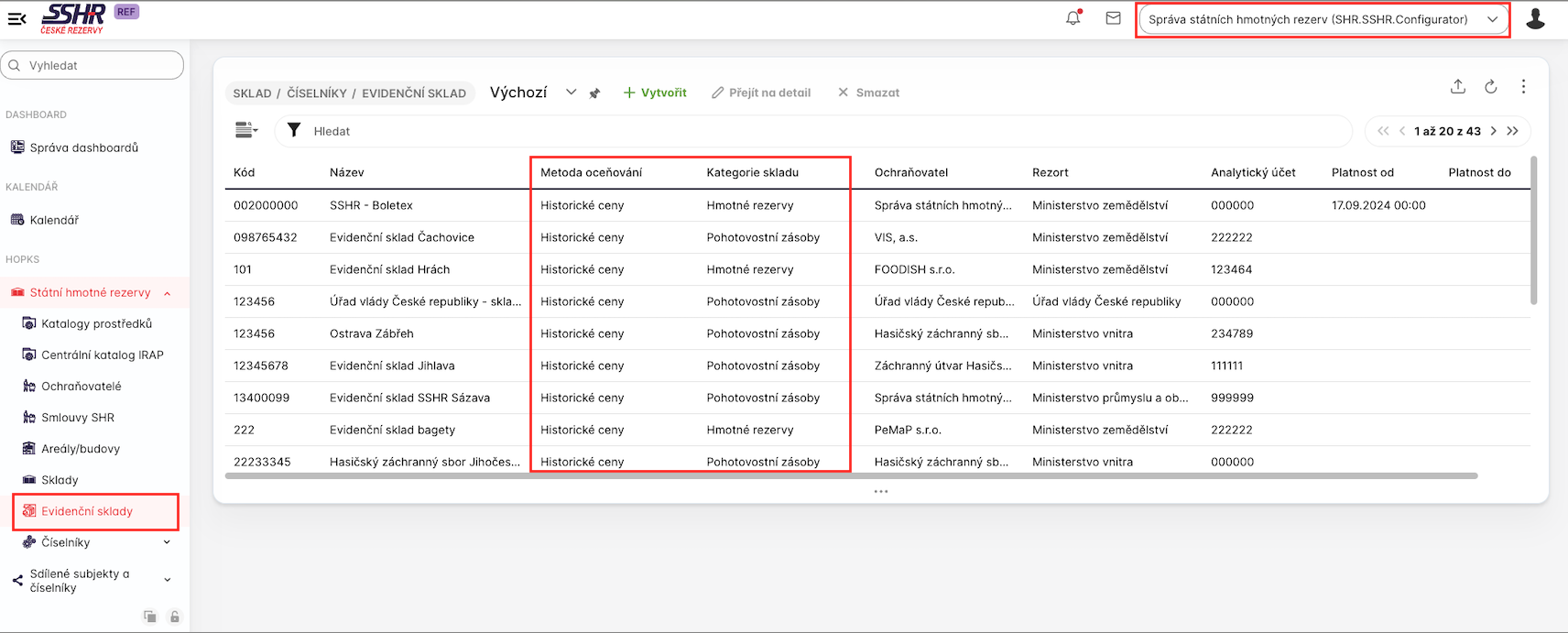 Uživatelé s rolí SHR.SSHR* vidí všechny evidenční sklady v KRIZKOM 26. základní rolí pro konfiguraci evidenčních skladů HR a PZ je SHR.SSHR.Configurator.