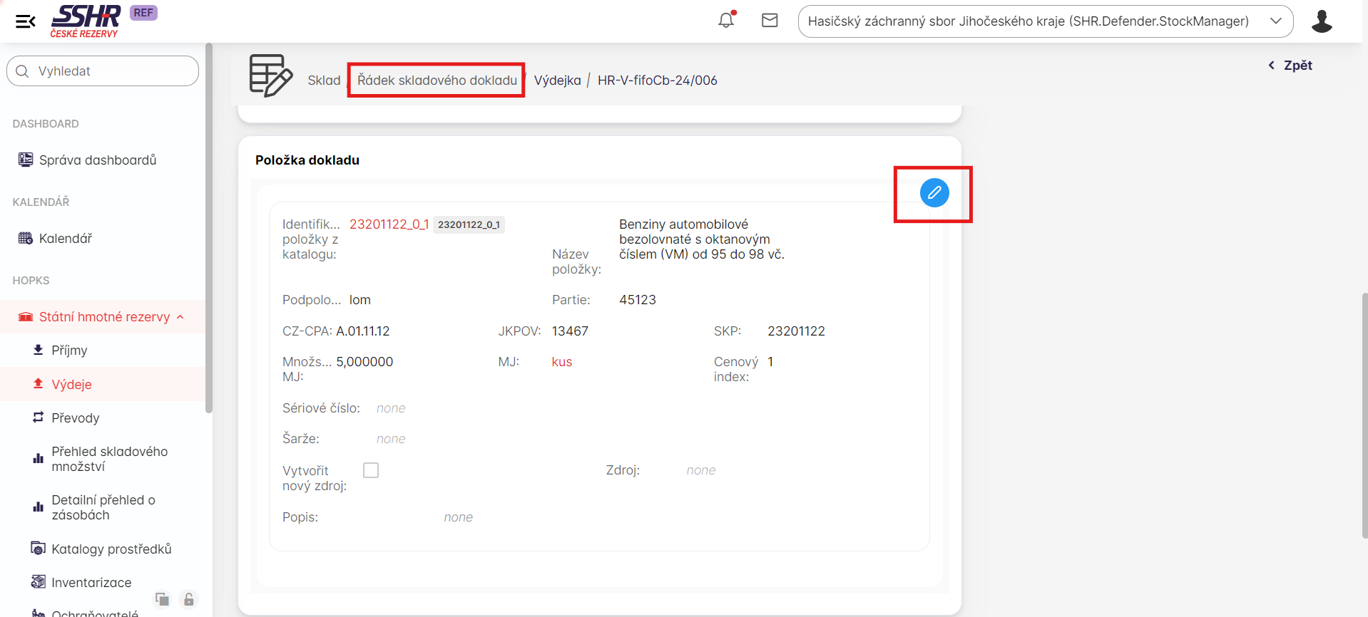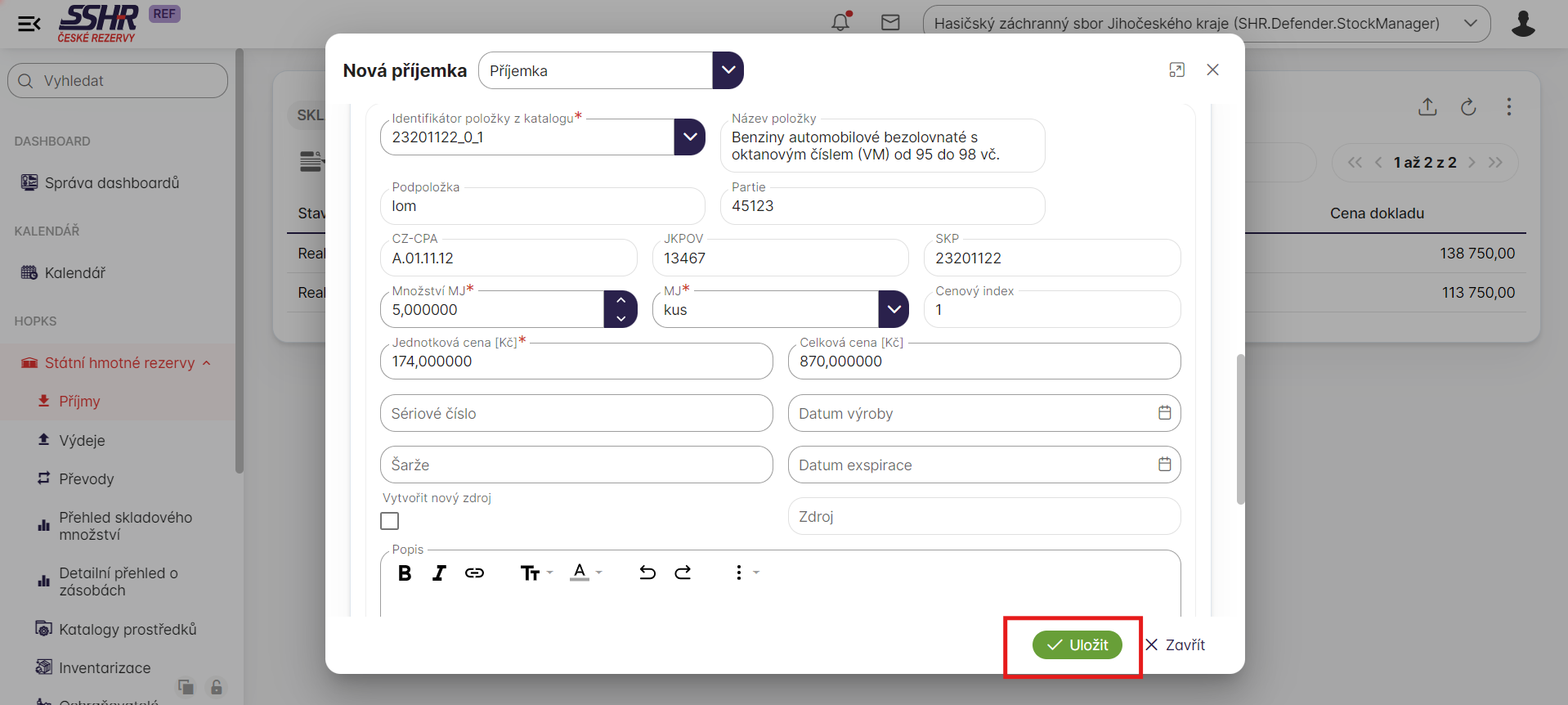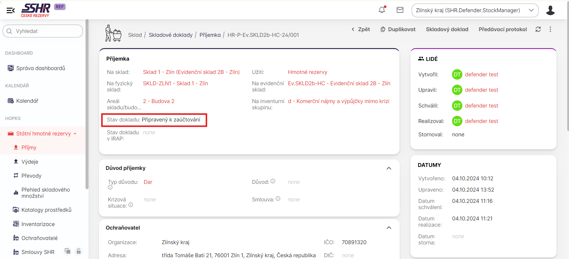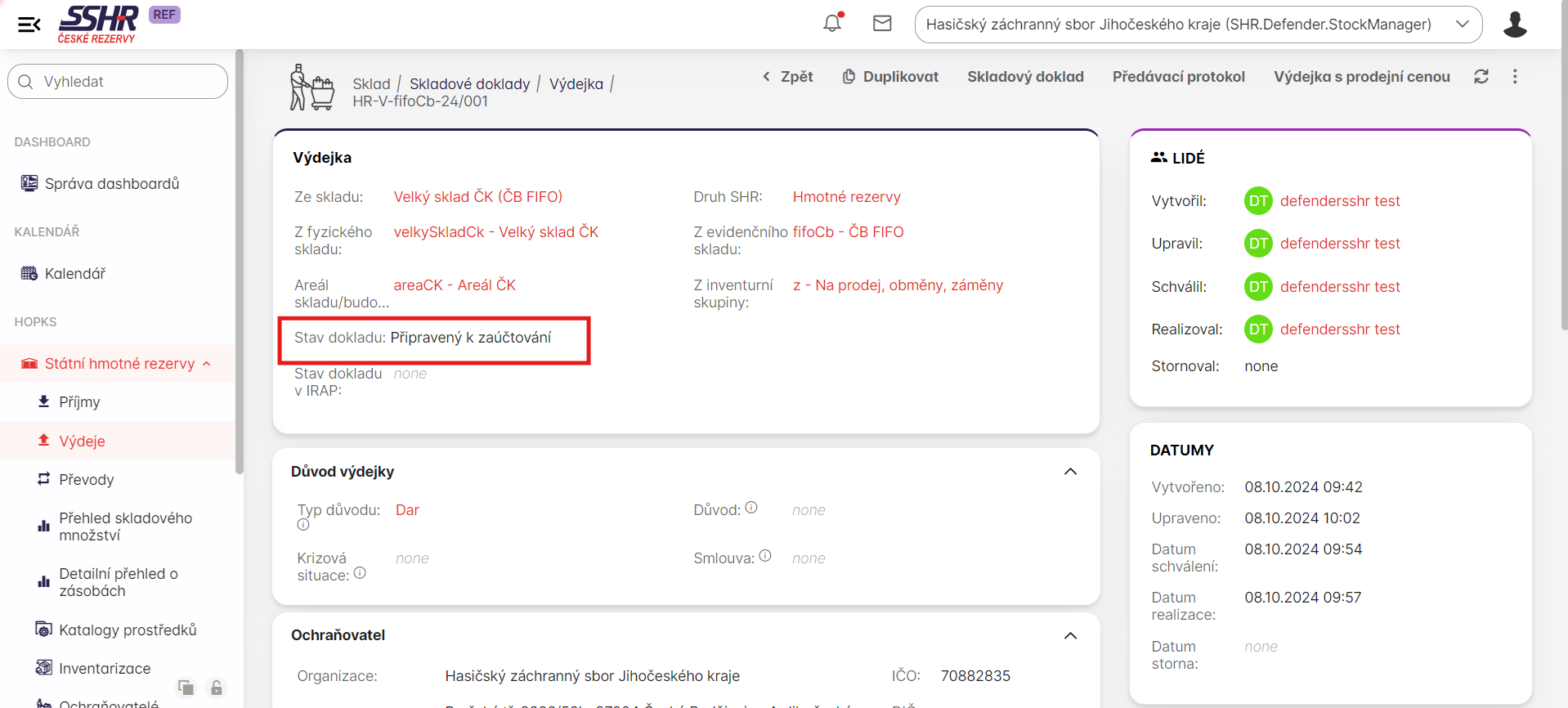 SHR.Defender.StockManager tlačítko "Připravit k zaúčtování". Kliknutím