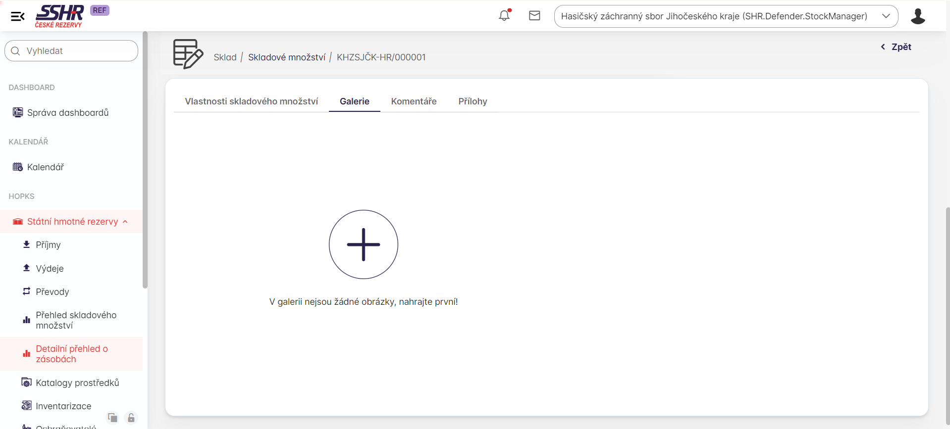 V detailu se mi zobrazují všechny informace pro vybranou dílčí zásobu a ve spodní části obrazovky je formulář se záložkami "Vlastnosti skladové položky", "Galerie", "Komentáře", "Přílohy".