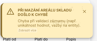 areálů. Pokud je areál skladu použit, tak nedovolí jej smazat a zobrazí