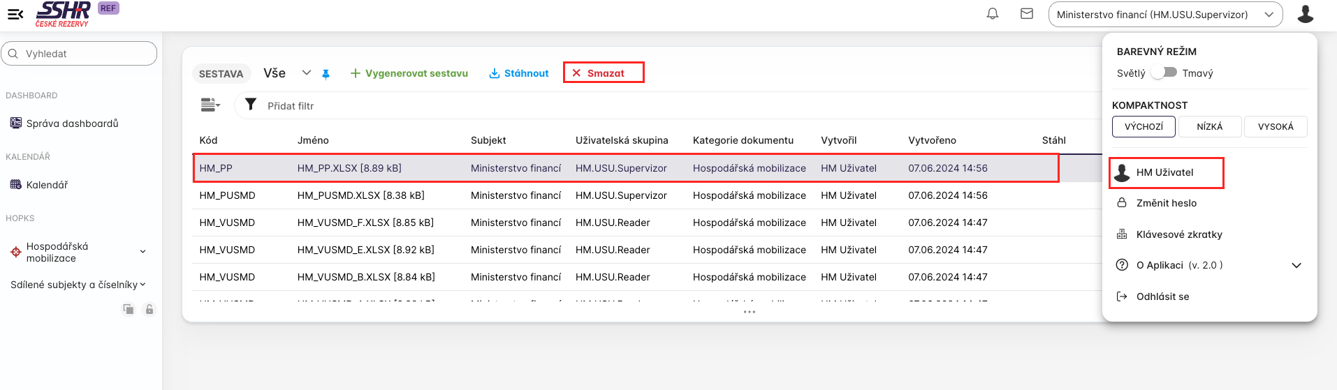 Standardně může sestavu smazat pouze ten uživatel, který tuto sestavu vygeneroval.