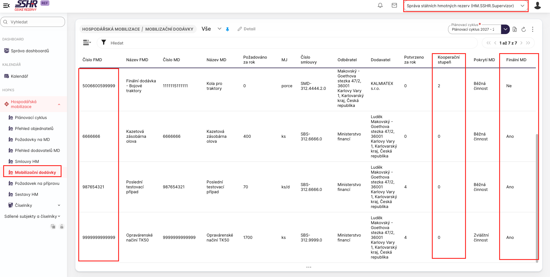 Uživatel s přiřazenou rolí vidí všechny mobilizační dodávky.