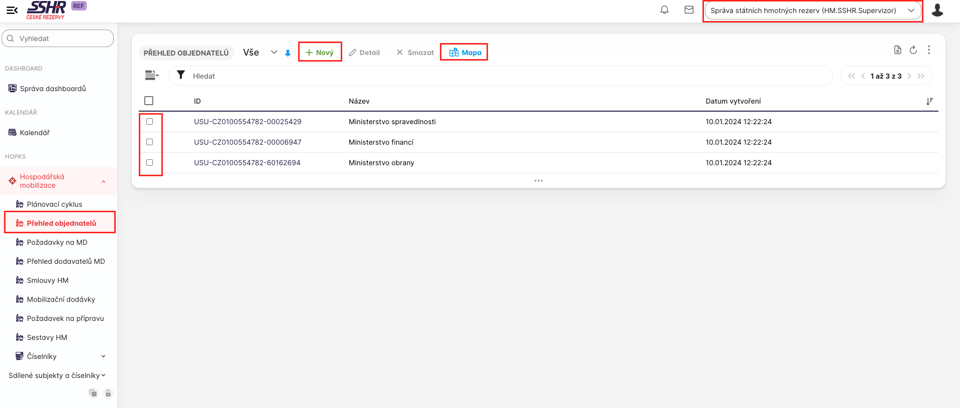 Uživatel s rolí HM.USU. Supervizor a HM.USU.Reader vidí v přehledu pouze své ÚSÚ.