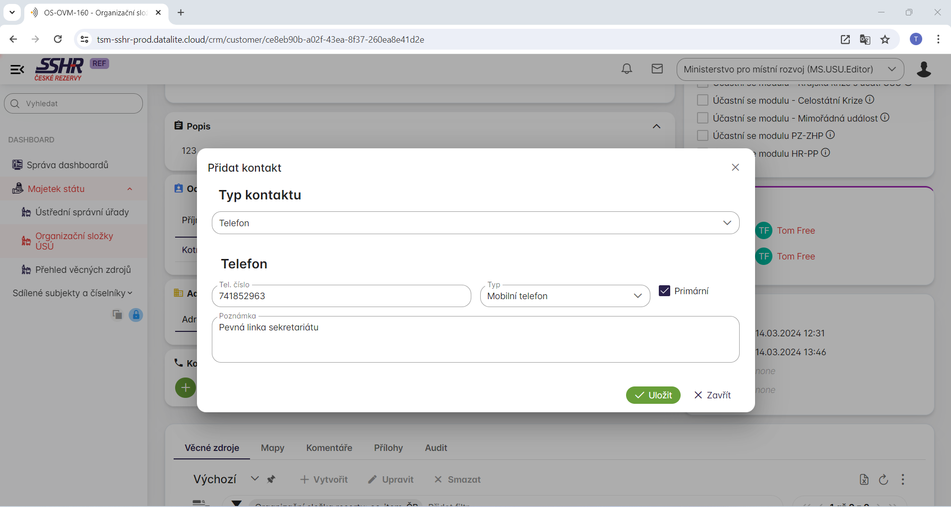 Přidání nové odpovědné osoby do detailu organizační složky ÚSÚ