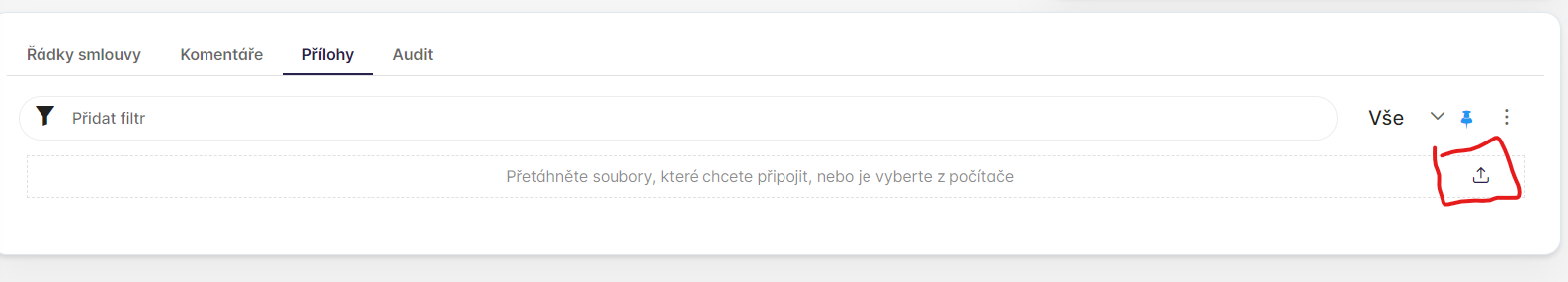 K detailu záznamu (např. detail Smlouvy) lze nahrát jakoukoliv přílohu z počítače označeným tlačítkem