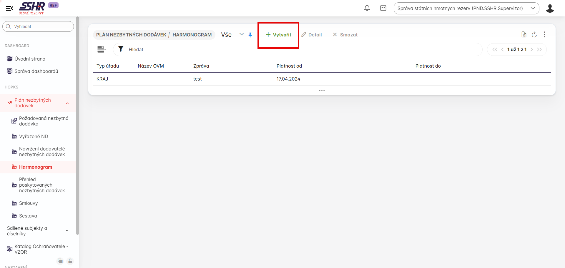 Některé role a v závislosti na přiřazení orgánu veřejné moci uživateli mohou vytvářet harmonogramy pro ostatní OVM. Týká se roli PND.SSHR.Supervizor, PND. SSHR.KU a PND.SSHR.USU. Pokud