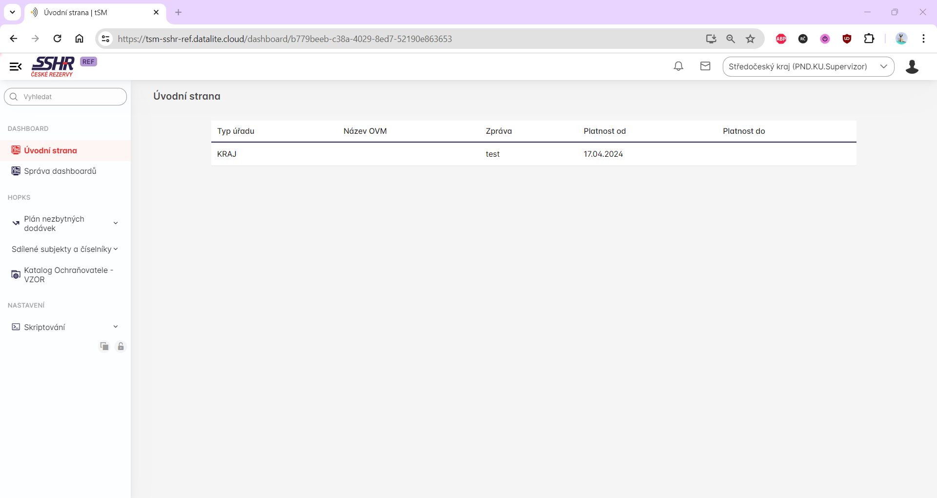 Při přihlášení uživatele do systému KRIZKOM 26 se uživateli zobrazí úvodní stránka, na které má zobrazeny harmonogramy dle odpovídajícího přiřazení.