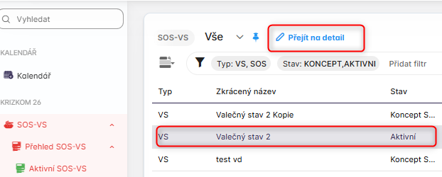 Tlačítko Přejít na detail je zobrazováno i rolím, které mohou SOS-VS událost vidět.