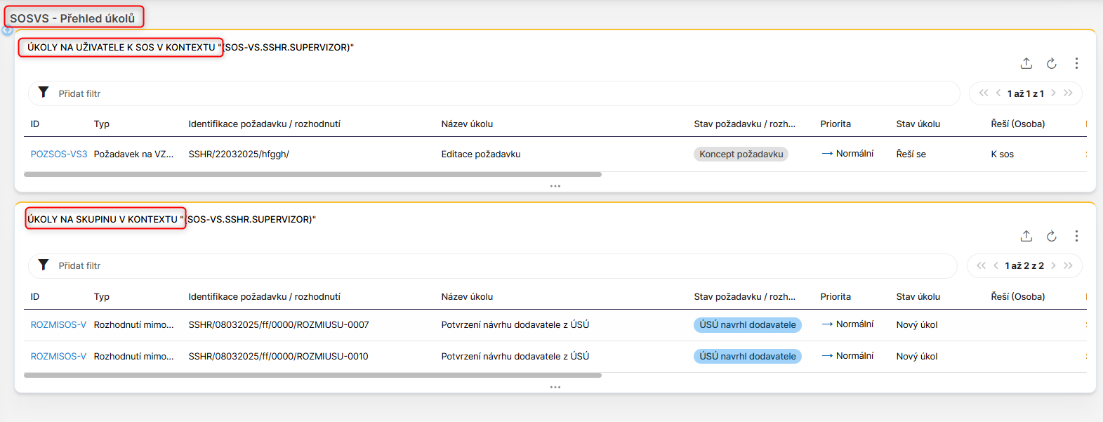 Rozkliknutím obsahu Všechny SOS-VS se zobrazí seznam všech SOS-VS, v kontextu přihlášeného uživatele v konkrétní roli, bez omezení stavu.