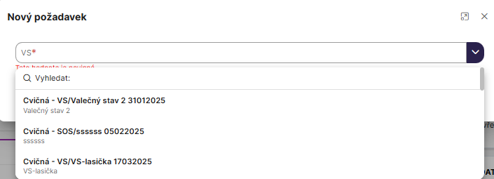 Vybere se konkrétní událost, pod kterou je potřeba kopii požadavku založit
